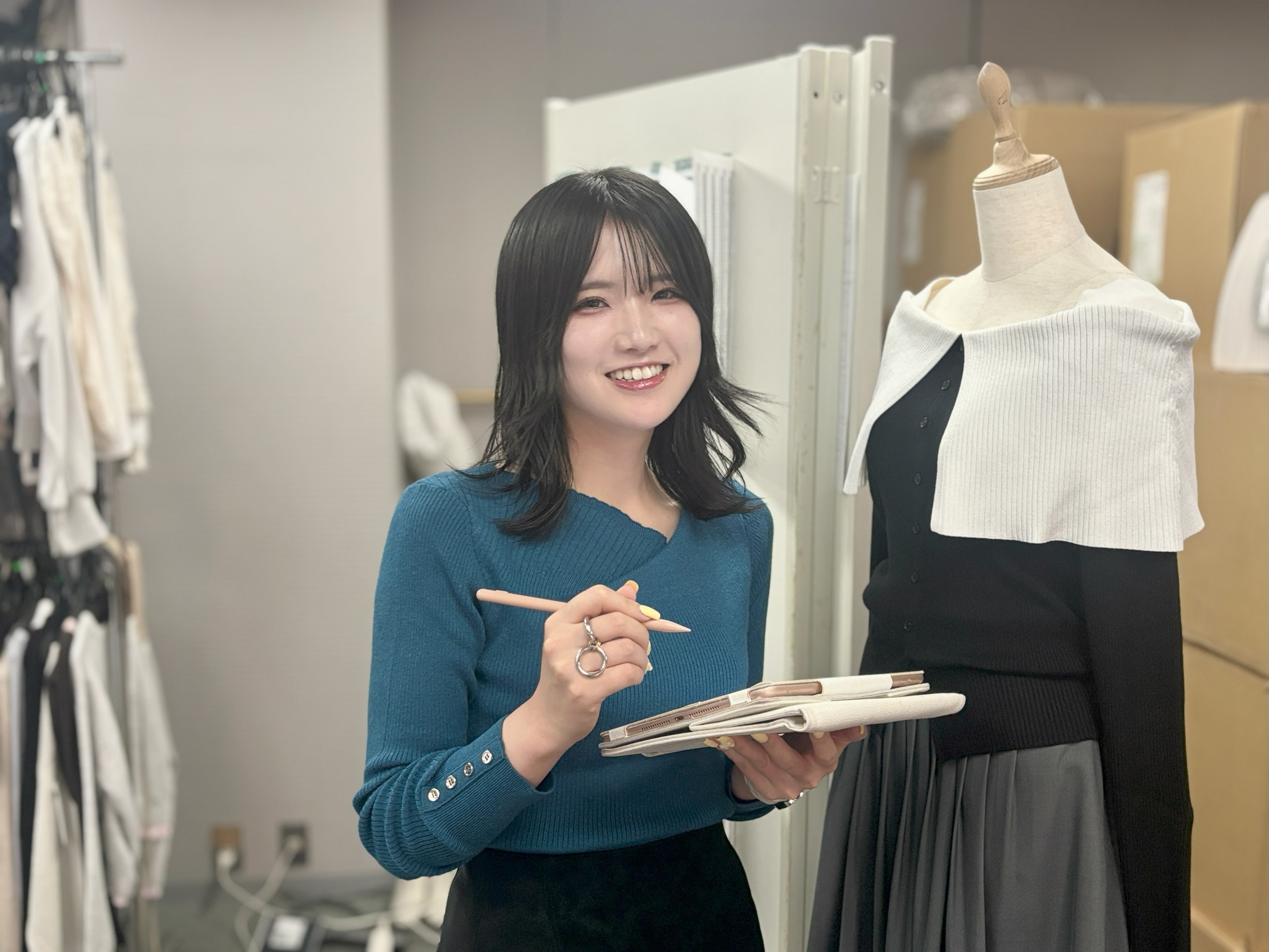 接客販売や商品製作以外にも、アパレルファッションとは直接的な関わりのないシステム関連であったり、近年重要視されているEC(オンラインサイトなど)であったり、幅広い分野に携われるのは良いことですよね。自身の成長にも繋がっています。